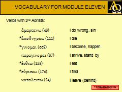 In addition to this please follow the link to Student Resources and have a look at the Hot Potatoes vocabulary testing programme. This is available for free online and is also excellent for teaching New Testament Greek.